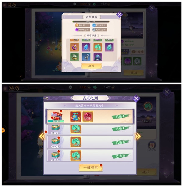 2. 通关游历塔时,每隔几关就会获得灵玉奖励。