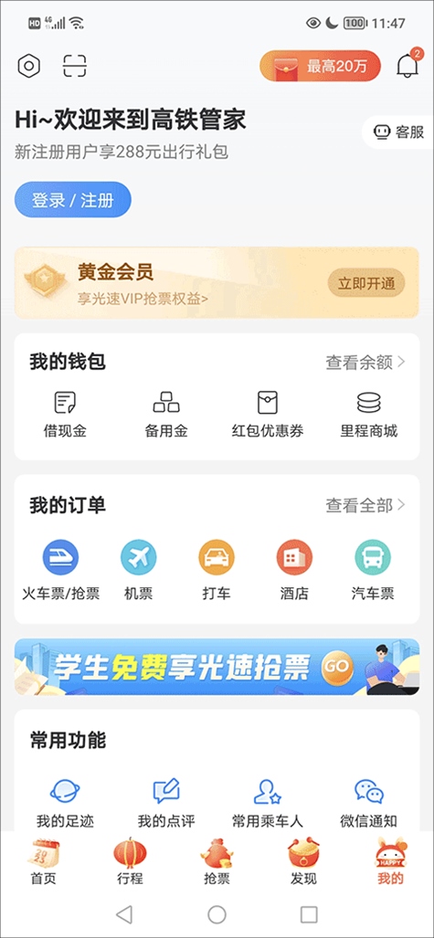 1、首先打开高铁管家应用,进入个人中心,使用您的12306账号登录。如果还没有账号,可以通过12306官网注册。