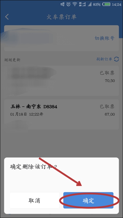 4、长按1秒后,订单下方会弹出删除提示框,点击“确认”即可删除该订单。