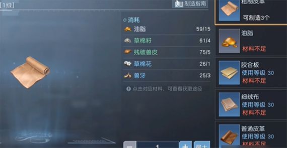 制造所需材料时,可以通过武器或防具制作功能来获得,升级庄园的材料基本都能在这里找到。