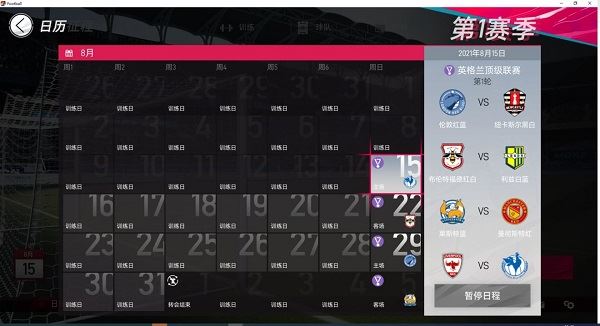 6、完成心仪球队阵容的组建后,就可以开启新赛季的联赛征程啦!点击左下角的「日历」查看完整赛程并开始比赛!