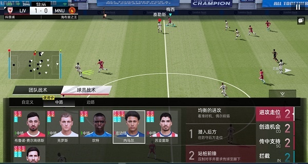 3、局内玩法:无需直接操作球员,玩家通过实时调整战术来影响场上的局势(注意:经理排位赛中的战术设置仅适用于该模式,不会影响其他模式)。