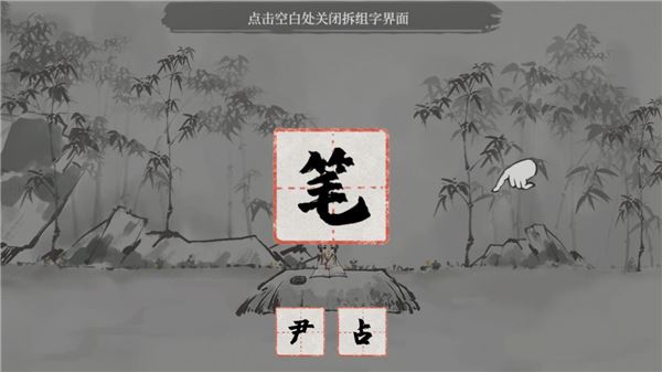 2、点击右侧的竹笋,得到“笋”字,按照提示将“笋”字中间拆开。