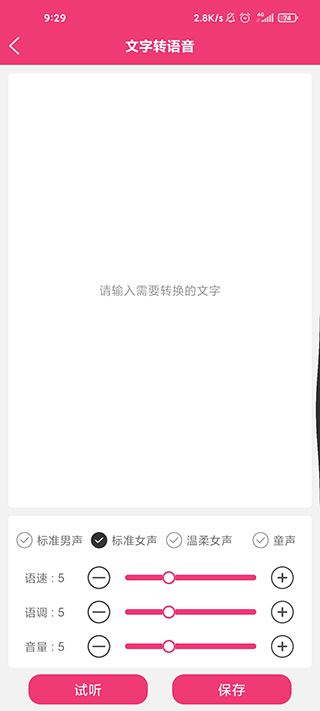 3、以文字转语音功能为例,只需要输入文字,软件就能转换成语音。